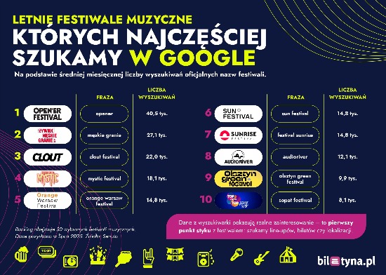 Pełny raport dostępny jest na blogu biletyna.pl: https://biletyna.pl/blog/ranking-letnich-festiwali-muzycznych-w-polsce.