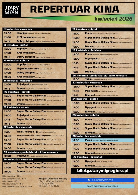 Repertuar kina w Starym Młynie w najbliższym miesiącu to m.in.: