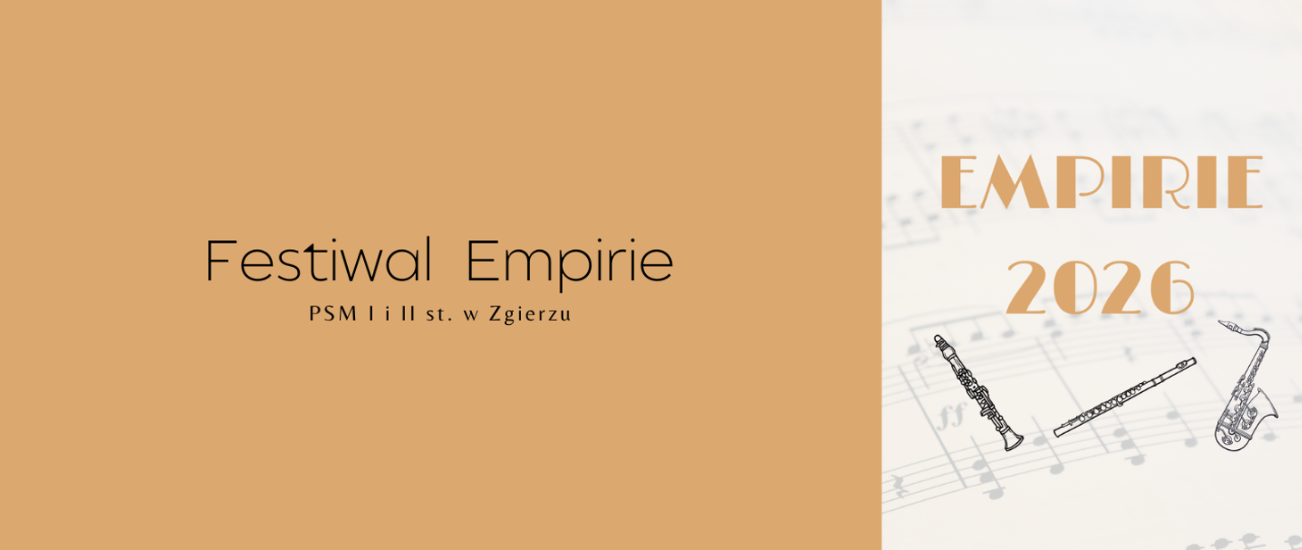 Państwowa Szkoła Muzyczna I i II stopnia w Zgierzu zaprasza wszystkich miłośników muzyki, artystów oraz pasjonatów instrumentów dętych drewnianych na Ogólnopolski Festiwal Instrumentów Dętych Drewnianych EMPIRIE 2026, który odbędzie się w dniach 7-8 maja 2026 roku w Państwowej Szkole Muzycznej I i II stopnia w Zgierzu.