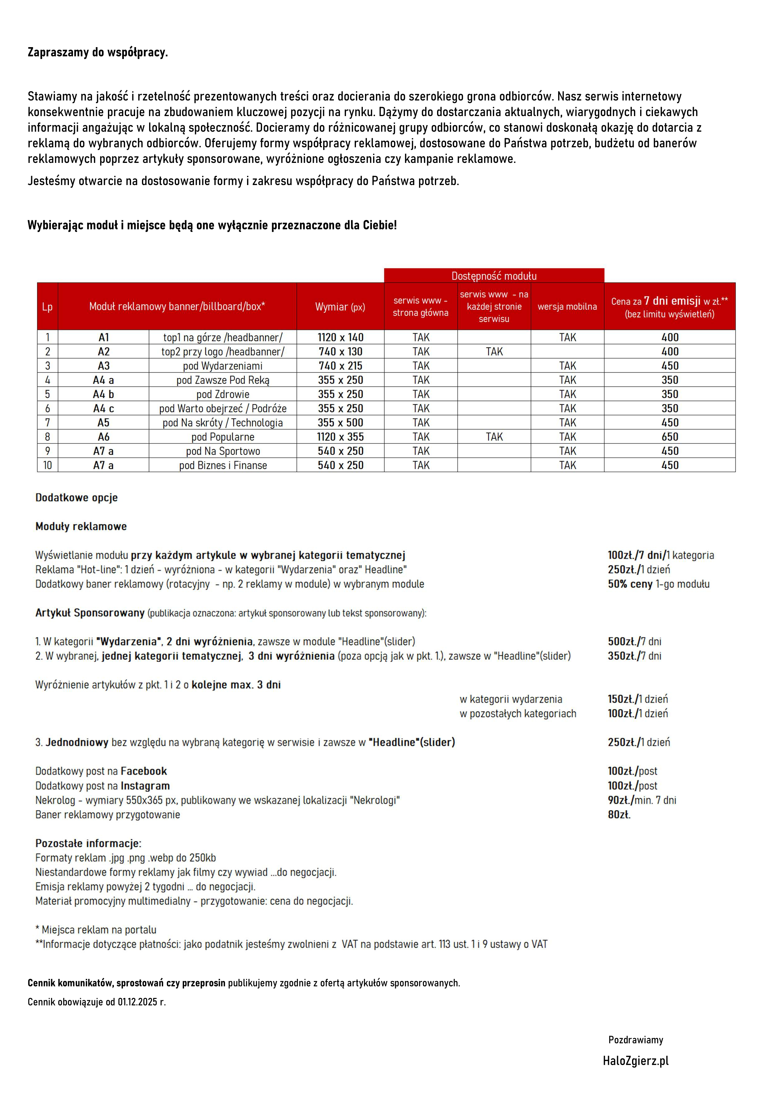 Redakcja portalu HaloZgierz.pl prosi Cię o zgodę na wykorzystanie Twoich danych osobowych w tych celach: